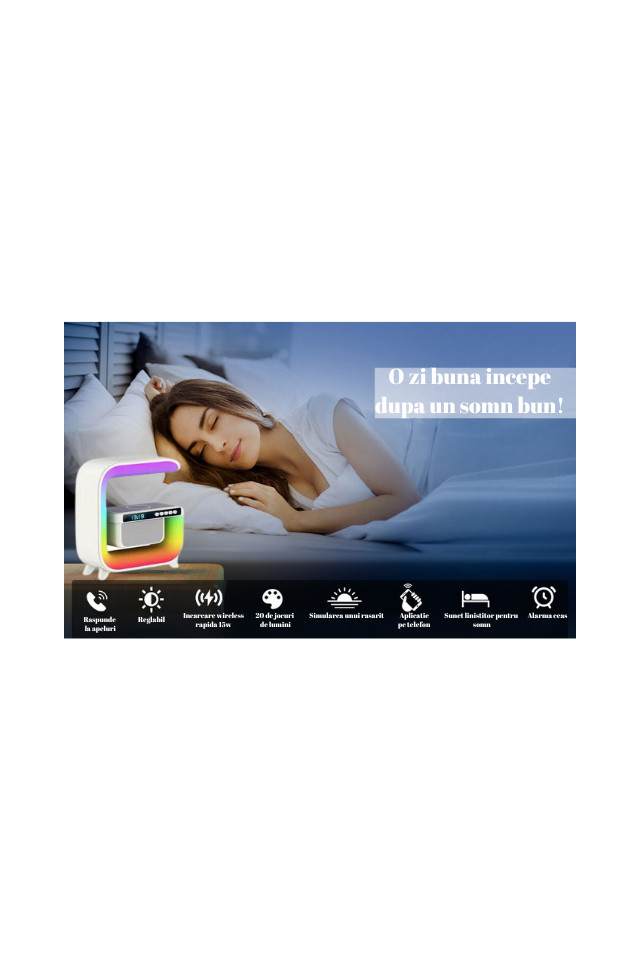 Ceas cu Alarmă: Funcția de ceas cu alarmă vă permite să vă programați trezirea intr-un mod personalizat. Aduceți confortul unei treziri blande in fiecare dimineață.