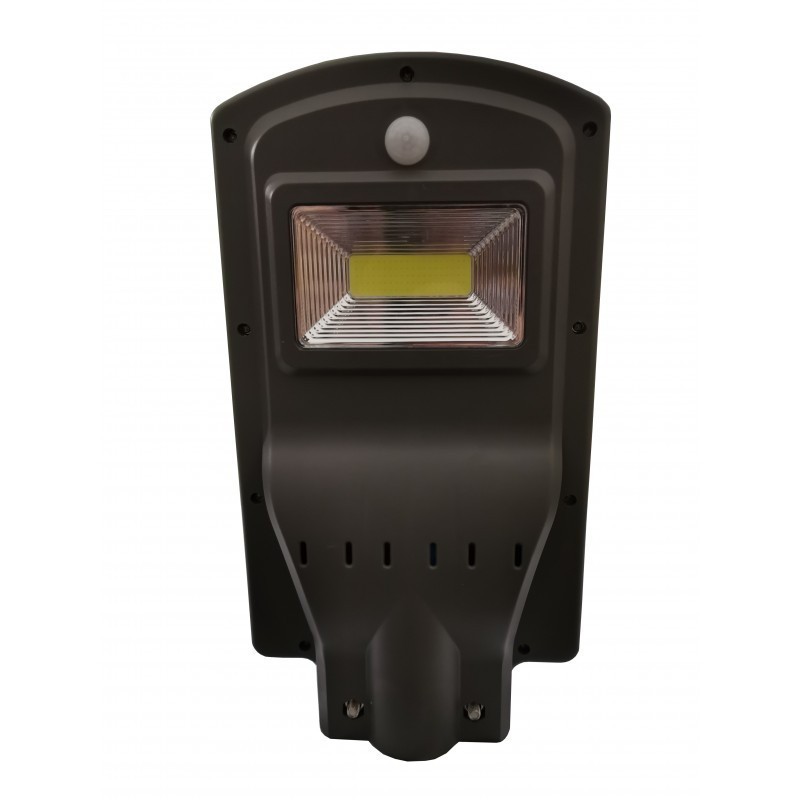 Lampa stradala solara elSales ELS-L20 cu LED COB de putere 20W- adica un ledde 20W , avand temperatura de culoare alb rece 6500K, ce se poate monta pe stalp cilindric :stradal , pietonal , pe alei ,intrari de garaj sau curti,dar nu numai.Acest proiector care are incorporat pe partea superioara un panou solar monocristalin cu ajutorul caruia incarca acumulatorii tip Li-Ion, este proiectat sa fie folosit chiar si in locuri unde nu aveti retea electrica. Datorita senzorului de prezenta incorporat , care aprinde lampa doar atunci cand detecteaza miscare durata de viata a acumulatorilor ( bateriilor ) este prelungita , si timpul de iluminare creste. Corpul proiectorului este fabricat din plastic ABS . Lampa are un sistem de cleme ce se prind de stalp cu ajutorul a doua suruburi. Senzorul de prezenta actioneaza de la o distanta de 8-10 metri .Avantajele alegerii unui astfel de produs : Usor de instalat Alimentare : Lumina Solara Prietenos cu mediul Nu necesita racordare la reteaua electrica Durata de viata aLedurilor peste 50000h Specificatii: Protectie IP6 5 Senzor de prezenta : 120˚ Intrerupator : ON/OFF Tehnologie : LED COB Numar LED-uri : 1 buc Dimensiune LED-uri: 65 x 23 mm Capacitate Acumulator LI-ION : 6000 mAh Dimensiuni : 400 x 210 x 70 mm