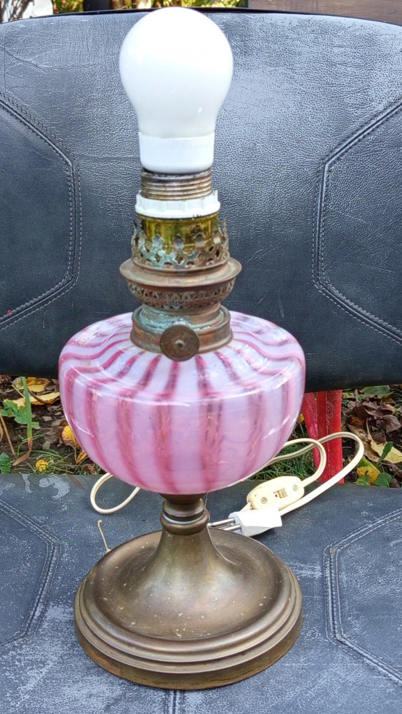 Vând o lampa veche din bronz și sticla adaptata veioza noptiera.