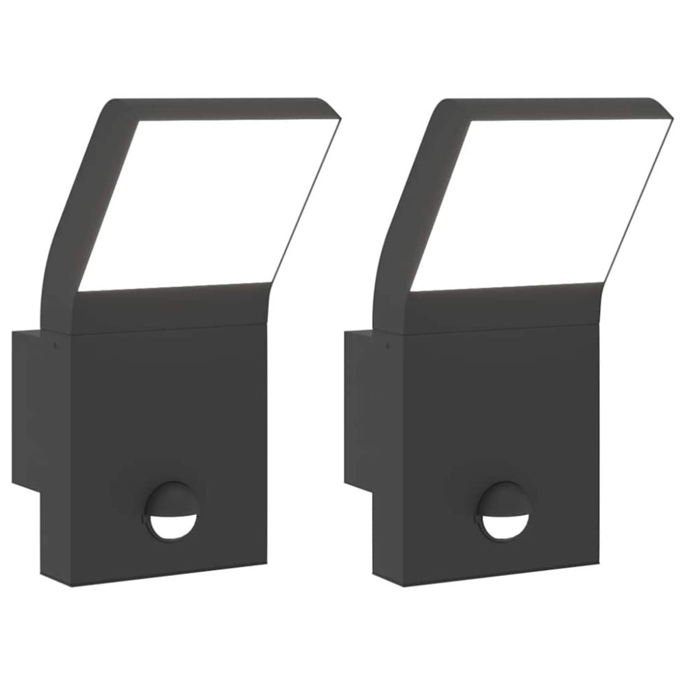 Lampi exterioare de perete cu LED/senzor 2 buc. negru aluminiu