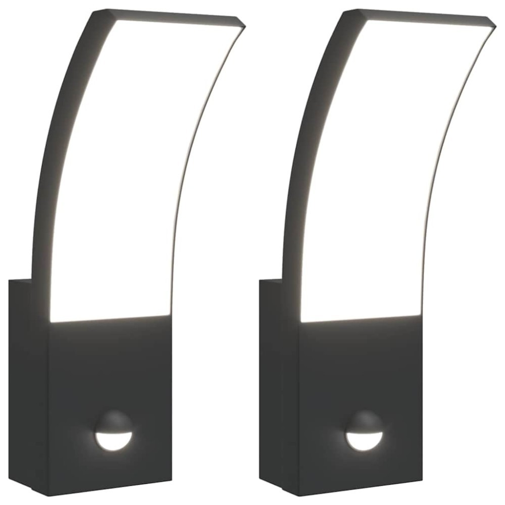 Lampi exterioare de perete cu LED/senzor 2 buc. negru aluminiu