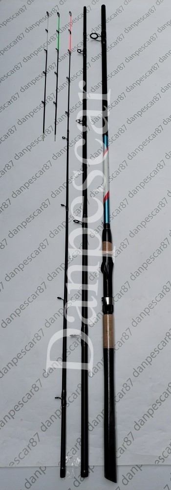 - Lanseta din carbon, destinata pescuitului la "feeder", Are mâner lung de E.V.A SI plută cu inele T-Sic și 3 vârfuri de schimb.