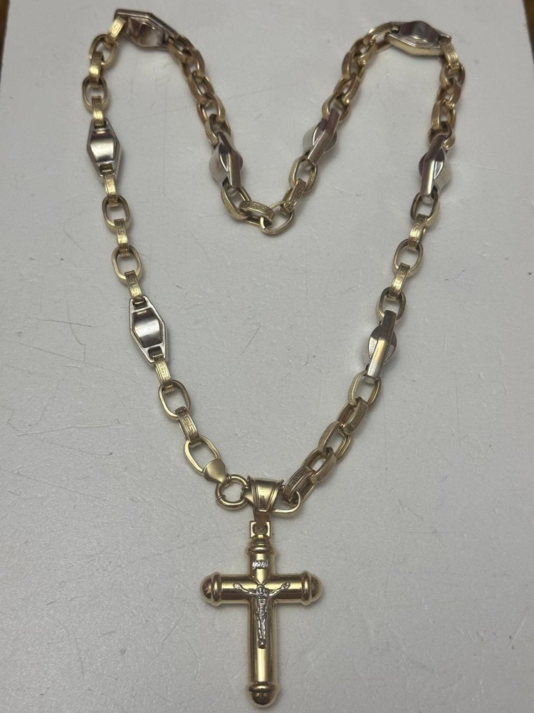 LANT + CRUCE AUR galben si alb 14K - Mare - Model Versace - 43.5g. - 380lei/gr.
