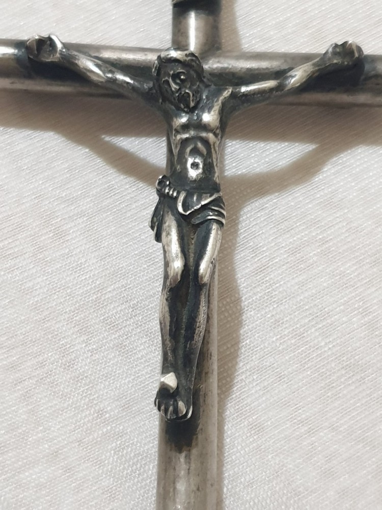 Lant cu cruce vintage pectorala din argint 1884, deosebita si