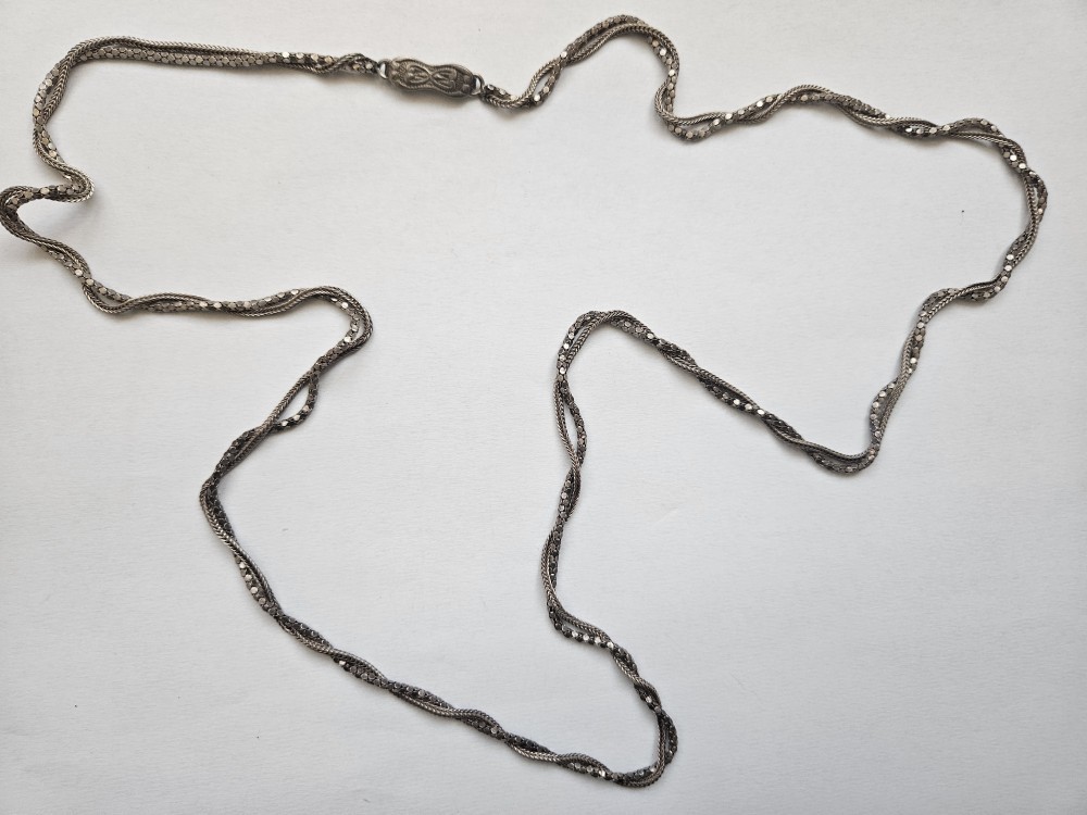 Lant din argint, greutate 22.10 gr, marcaj 900, lungime lant 90 cm, in stare excelenta, cumparati cu incredere, orice produs se poate returna! Transport doar prin Posta Romana!