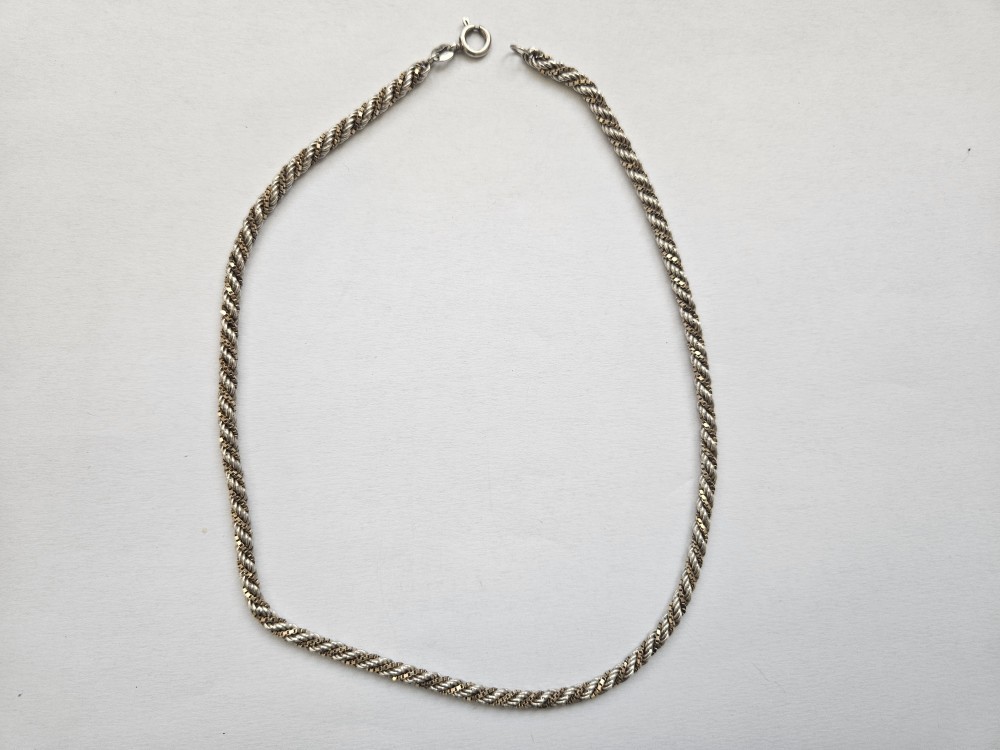 Lant din argint aurit impletit , greutate 12.11 gr, marcaj 925, lungime 37 cm , in stare foarte buna, cumparati cu incredere, orice produs se poate returna! Transport doar prin Posta Romana!