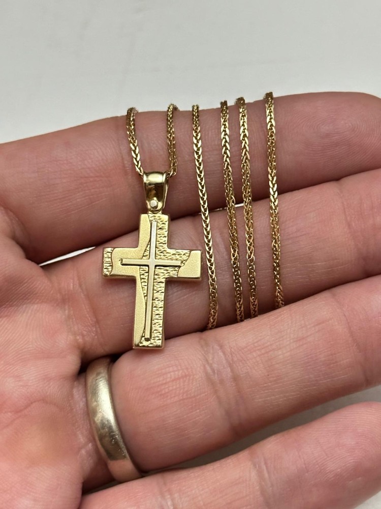 LANT + PANDANTIV AUR 14K - CRUCE - Crucifix - 6.8g - Grecia - 395lei/gr.