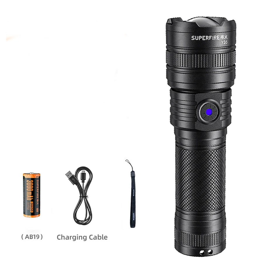 Lanterna LED Superfire Y26, 1200lm, 800M, 3700mAh, incarcare USB-C, 15W