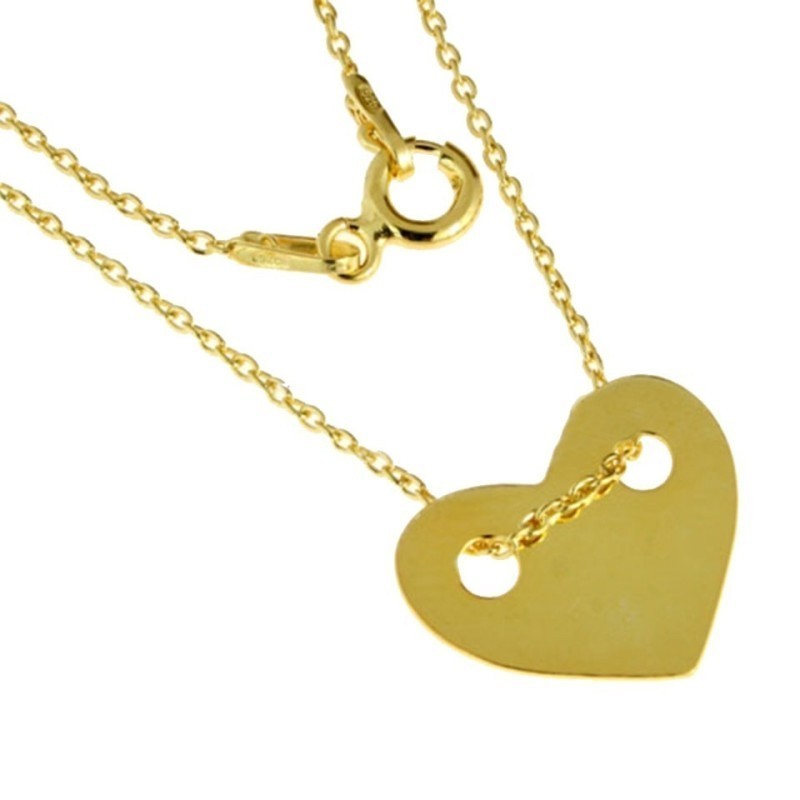 Lantisor argint 925 suflat aur cu inima