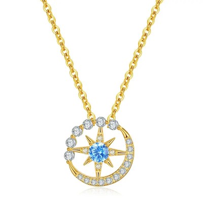 Lantisor Din Argint Auriu Model Rotund Stea/Soare Albastru FINUT Arg409A