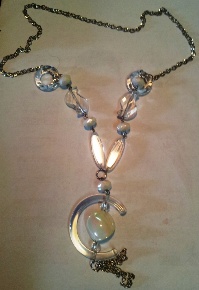 Lantisor lung cu motive din plastic alb si transparent