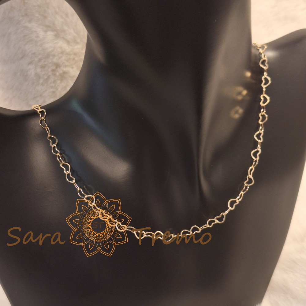 Romantic, delicat și cu un design plin de personalitate – acest lănțișor pentru femei, placat cu aur, este compus din zale în formă de inimioară, unite într-un model armonios și expresiv. Fiecare detaliu este atent finisat pentru a crea o bijuterie care să spună ceva fără cuvinte.