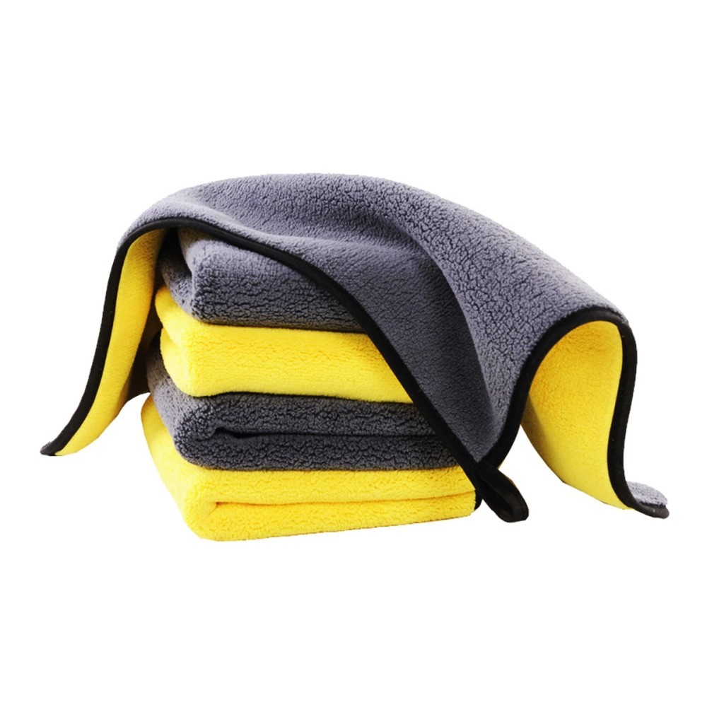 Laveta din Microfibra pura si super absorbanta EMESZON®, 30x30 cm, 800 GSM, pentru curatare masina, geamuri, monitor, gri-galben