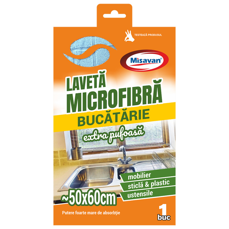 - Laveta microfibra este ideala pentru a sterge orice suprafata din bucatarie, fara a lasa urme sau scame pe suprafata;
