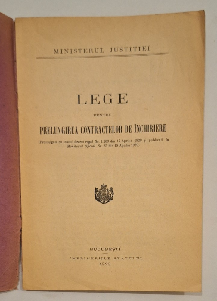 Lege pentru prelungirea contractelor de închiriere – Ministerul Justiției, 1929