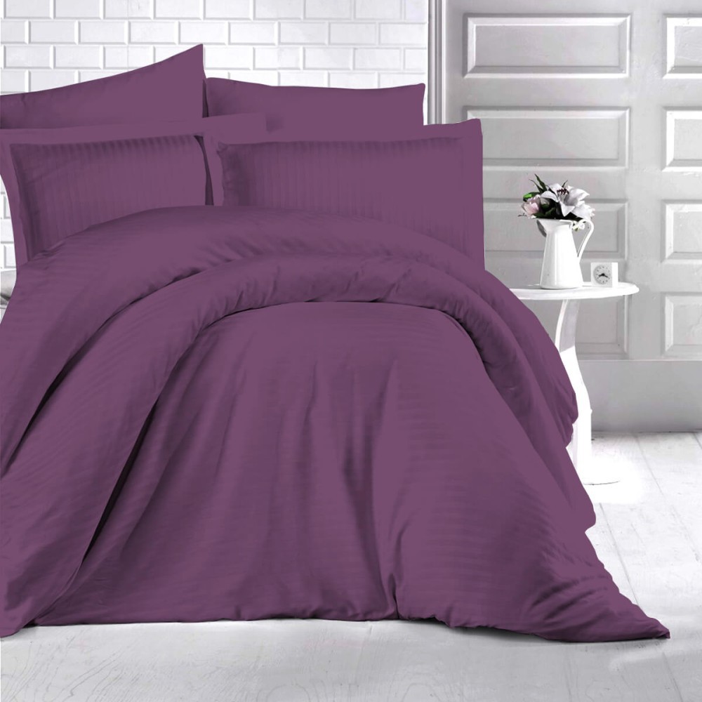 Lenjerie pat dublu,damasc satinat,4 piese,mov inchis-A202