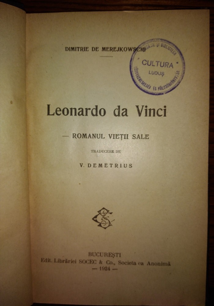 LEONARDO DA VINCI -ROMANUL VIETII SALE -DIMITRIE DE Merejkowschi 1924 ed. Socec