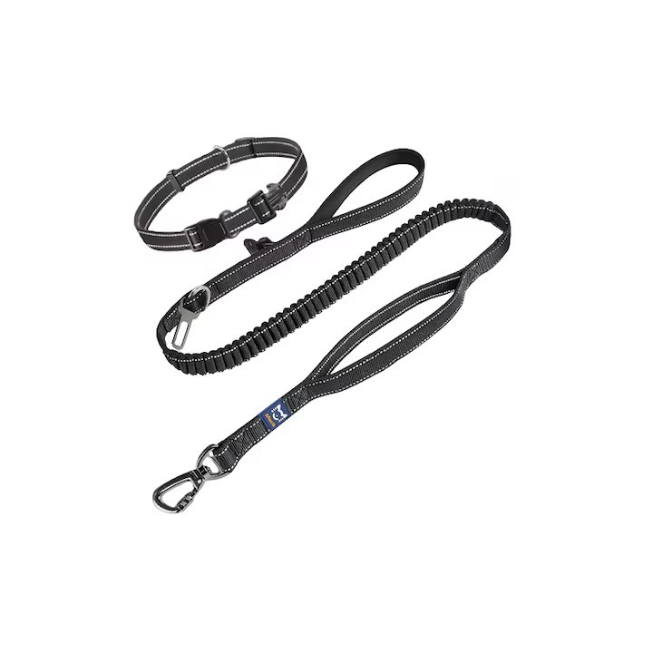 Lesa dubla pentru caini: cu o a doua lesa detasabila puteti rula doi caini in acelasi timp.