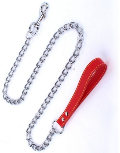 Lesa lant 2 mm/1,20 m & maner piele rosu