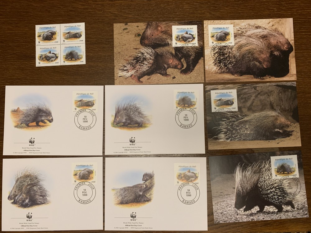 leshoto - porc spinos - serie 4 timbre MNH, 4 FDC, 4 maxime, fauna wwf