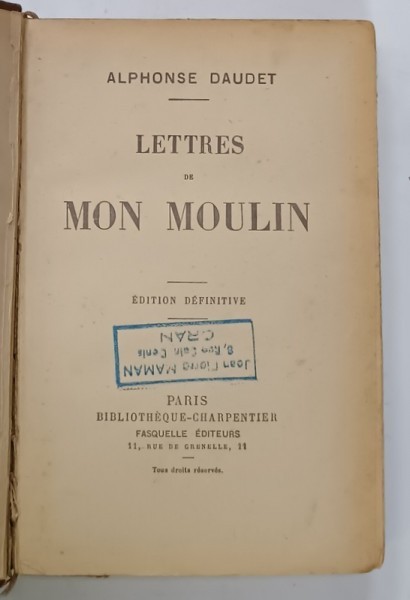 LETTRES DE MON MOULIN par ALPHONSE DAUDET , EDITION DEFINITIVE , EDITIE INTERBELICA