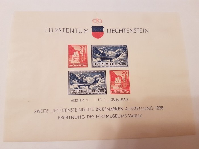 liechtenstein 1936 vederi in vaduz/ colita nestampilata MH
