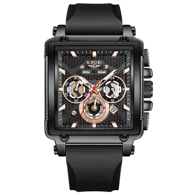 LIGE 89217 Ceas Barbati Quartz, Square Design, Silicon Strap, Luminous, Calendar, Waterproof 3ATM, Sport Casual