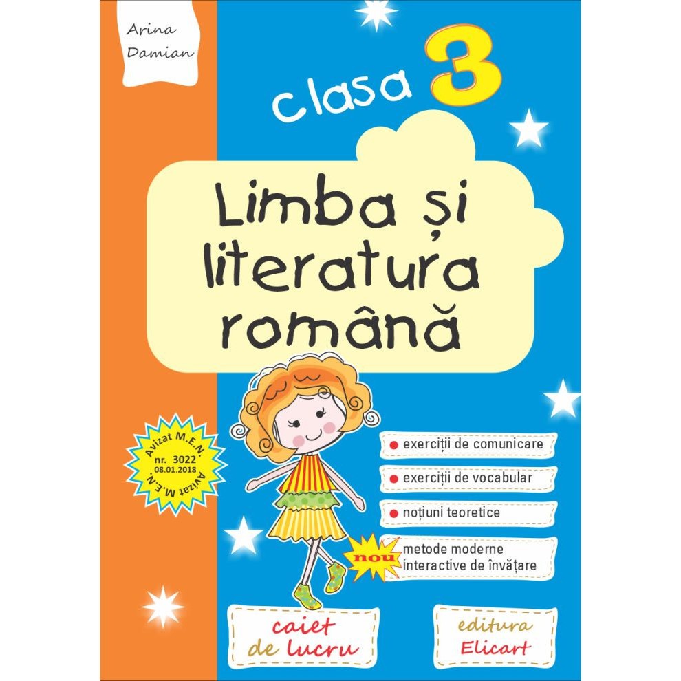 Acest auxiliar a fost avizat de Ministerul Educatiei Nationale, conform Anexei la Ordinul nr. 3022 din 08.01.2018, privind aprobarea auxiliarelor didactice din invatamantul preuniversitar. Auxiliarul abordeaza toate continuturile din noua programa pentru clasa a III-a, incluzand si notiuni teoretice si exercitii aplicative legate de textul nonliterar, fluturasul informativ, invitatia, mail-ul, afisul, cartea si revista clasei.De asemenea, sunt prezentate si modele de organizatori grafici, care il ajuta pe copil sa extraga mai usor informatiile din textul citit si sa le organizeze eficient: diagrama Venn, ciorchinele, metoda SINELG etc.Conform noilor tendinte in invatamant, care pun un mare accent pe intelegerea textului, am oferit spre analiza cateva lecturi, folosind diverse metode moderne interactive: metoda cubului, jurnalul cu dubla intrare, teoria inteligentelor multiple.Speram ca acest auxiliar, prin abordarea completa a temelor din noua programa, sa fie util elevilor si cadrelor didactice, indiferent de manualul pe care lucreaza la clasa.
