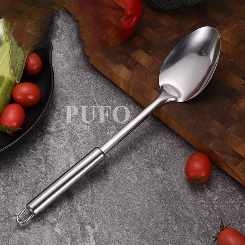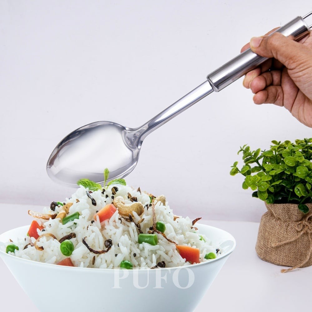 Lingura Pufo Serve din inox este noul tau ajutor in bucatarie pentru a pregati masa. Aceasta este usor de folosit si foarte practica, iti permite sa manevrezi mai bine si in siguranta alimentele sau la servire. Dupa ce ai umplut toate farfuriile de pe masa, spala lingura sub jet de apa si detergent.