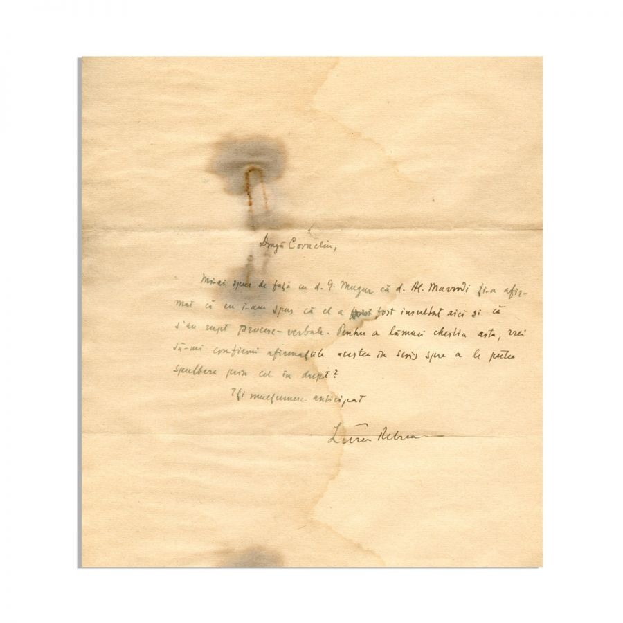 Liviu Rebreanu, scrisoare olografă către Corneliu Moldovan
