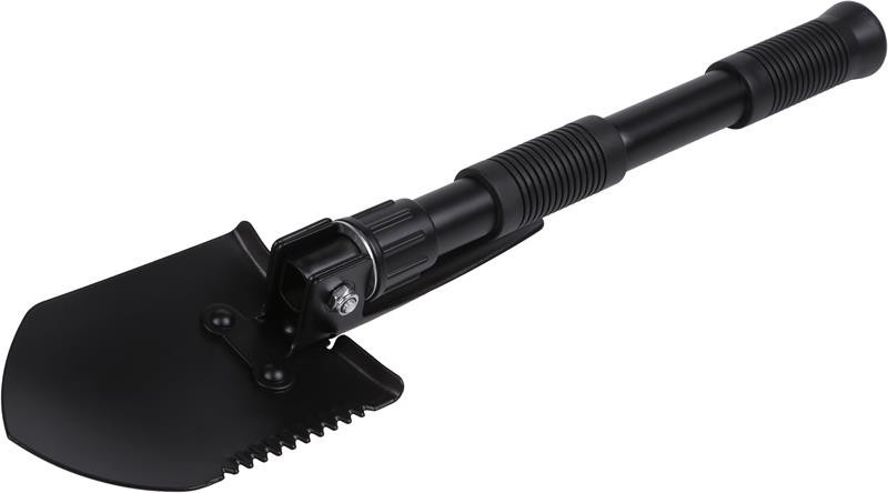 Fabricat din otel de inalta calitate, lopata ofera rezistenta si durabilitate. Datorita designului pliabil, lopata este usor de transportat si depozitat, ocupand un spatiu minim in portbagaj sau rucsac. Manerul ergonomic asigura o prindere ferma si confortabila, facilitand saparea si alte activitati necesare pe teren accidentat cau camping. Finisajul negru mat ii ofera un aspect modern și discret, fiind totodata rezistent la uzura si intemperii. Lopata este un accesoriu indispensabil pentru cei care doresc o solutie compacta si eficienta pentru diversele provocari ale aventurilor in aer liber.