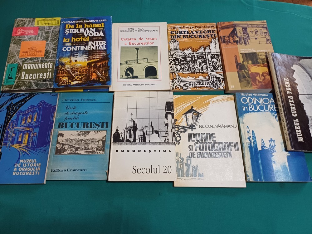 LOT 10 CĂRȚI MONOGRAFIR, ISTORIE BUCUREȘTI * ANII 1980 *DIFERITE TITLURI CONFORM FOTO/ STARE BUNĂ, CÂTEVA PREZINTĂ MICI PASAJE SUBLINIATE / STARE BUNĂ