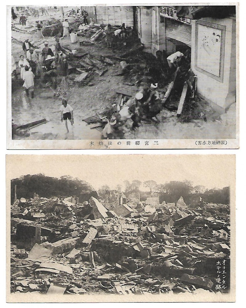 Lot 2 - 2 carti postale necirculate Yokohama 1923 dupa cutremur