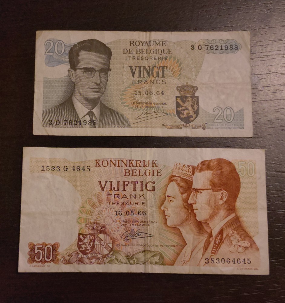 Lot 2 bancnote Belgia - 20+50 Francs 1964 si 1966.