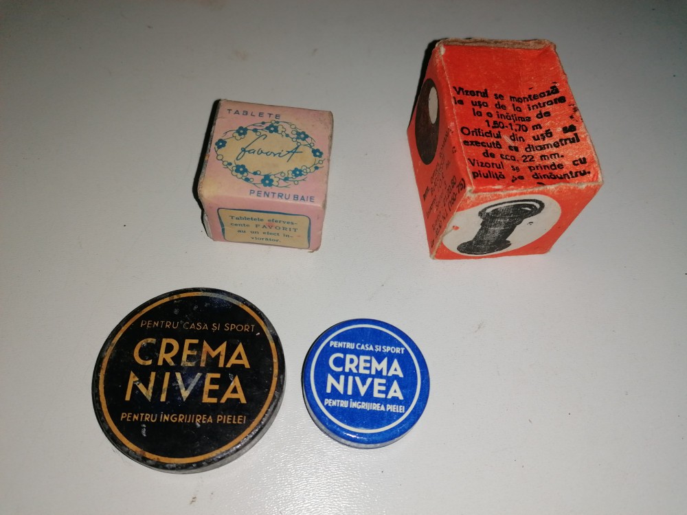 LOT 2 CUTII CREMA NIVEA / UN VIZOR IOR NEFOLOSIT ,TABLETE BAIE EFERVESC. FAVORIT