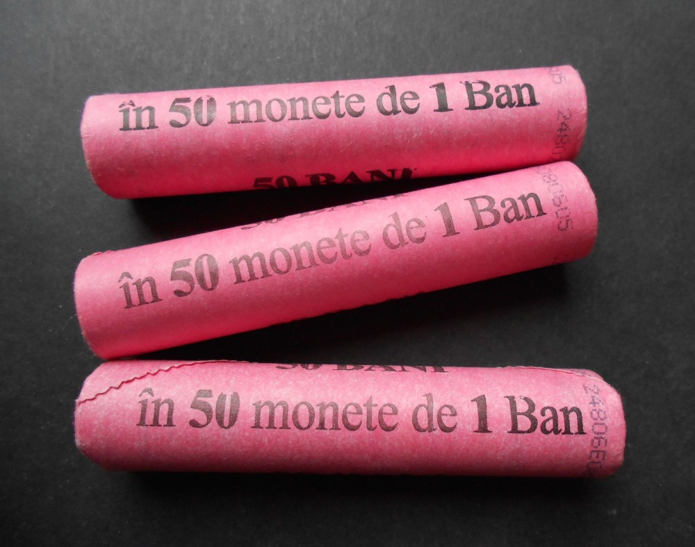 Rolele contin cate 50 bucati de monede de 1 ban.