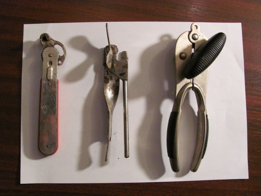 Lot 3 deschizatoare / desfacatoare, mai vechi, pentru conserve / folosite, dar inca functionale - metal, plastic tare; cu urme de utilizare; articolele nu prezinta vreun marcaj.