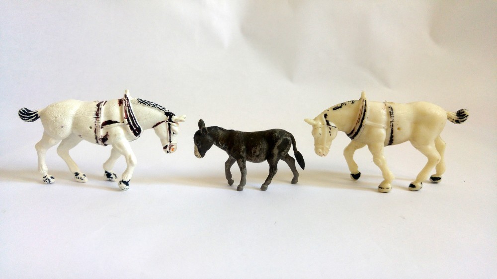 Lot 3 figurine: 2 cai si un magar, plastic, 9x5cm si 6x3cm