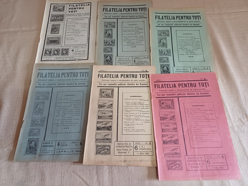 LOT 7 REVISTE FILATELIA PENTRU TOȚI, ANUL I - 1923 - NR. 1, 2, 3, 4, 5, 6, 11, STARE BUNĂ, CONFORM FOTO - 400 LEI.