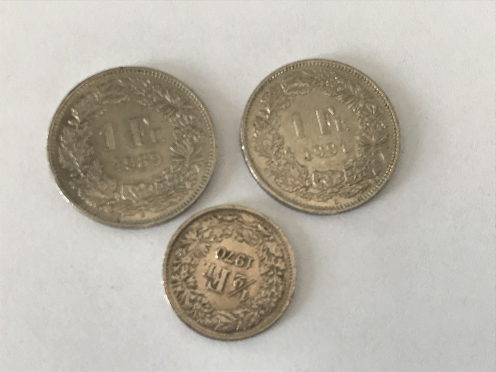 Lot de 3 monede-franci elvețieni:2x1 franc si 1/2 Fr din 1970.