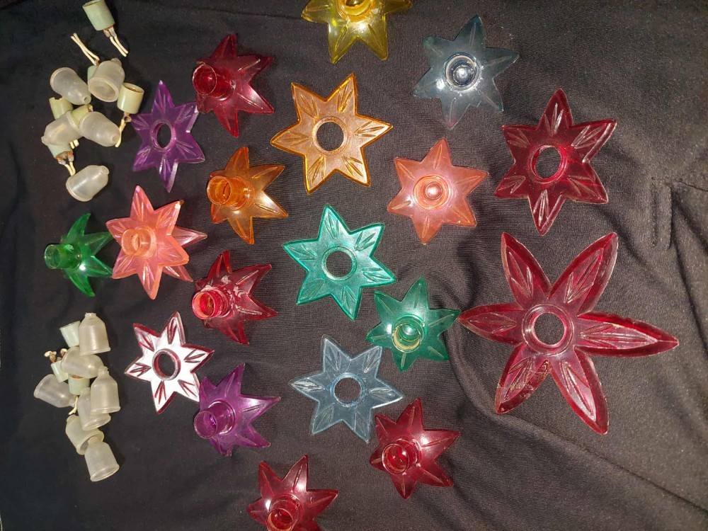 LOT FASUNGURI VECHI FLORI ORIGINALE joc lumini vechi Craciun,instalatie pom de iarna FLORI,Instalatie VECHE pentru brad FLORI-FARA cablu-vezi foto