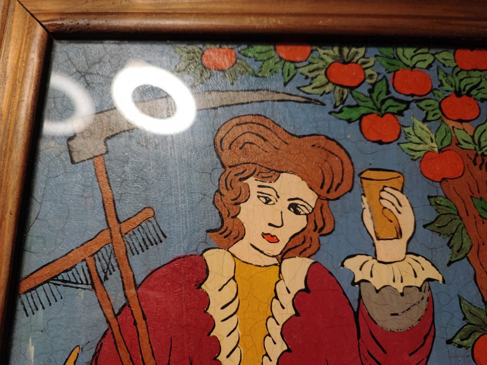 Lot vintage de 2 tablouri pe sticla cu marimea fiecare de 34,3 /