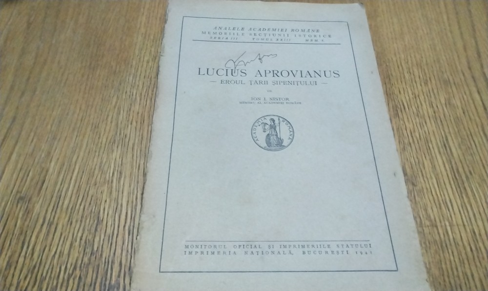 LUCIUS APROVIANUS Eroul Tarii Sipenitului - Ion I. Nistor - Imprimeria Nationala, 1941, 44 p.+ 2 planse