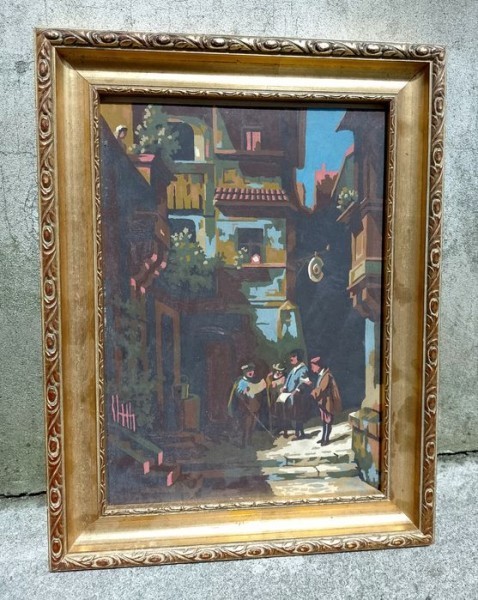 Lucrare în ulei încadrată într-o ramă din lemn masiv