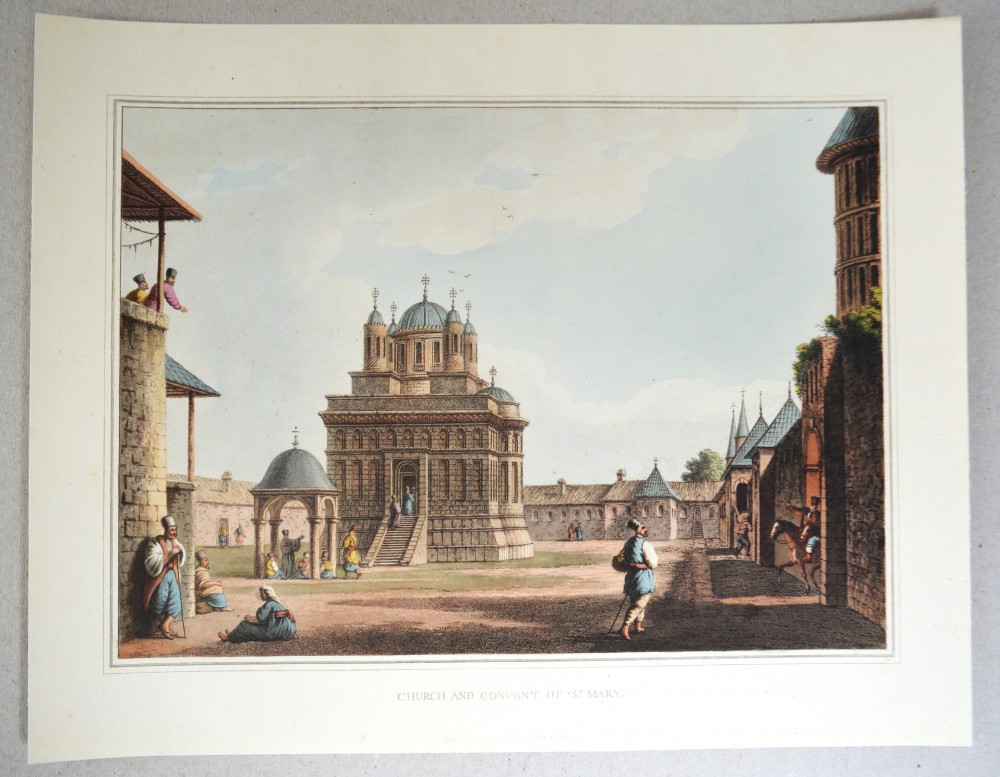 Luigi Mayer ( 1755-1803), aquatinta colorata manual intitulata "Church and convent of St. Mary" din seria "Imagini din Imperiul Otoman", publicata de R. Bowyer, Londra, 1809.