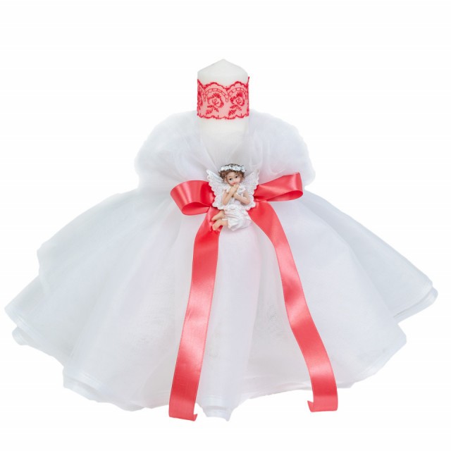 Lumanare botez rochita, fundita corai si ingeras, Denikos® 508