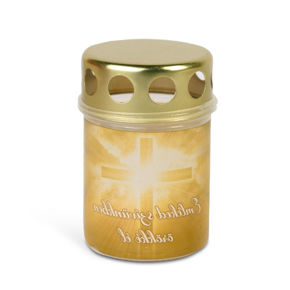 Lumanare din plastic cu cruce si capac metalic auriu – „Emléked Szívünkben Örökké Él” – 8,5 cm Best CarHome