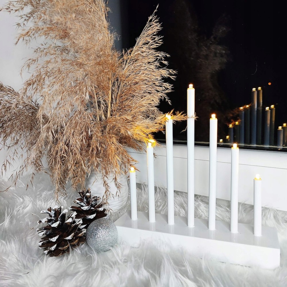 Sfesnicul de Advent simbolizeaza anticiparea vesela a Craciunului si, prin urmare, va fi accesoriul perfect pentru casa ta. Traditia spune ca trebuie sa fie in flacari pana in Ajunul Craciunului, si mai precis pana la miezul noptii intre Ajunul Craciunului si Craciun. Il poti aseza ca decor pentru o masa, semineu sau pervaz, ceea ce te va face sa te bucuri si mai mult de aura de sarbatore a Craciunului.Suportul pentru lumanari functioneaza cu baterii, asa ca il puteti pune oriunde doriti, fara sa va faceti griji daca exista o priza in apropiere. In plus, lampile cu LED-uri sunt foarte eficiente din punct de vedere energetic si sigure pentru copii in comparatie cu suporturile traditionale pentru lumanari de ceara.Mai mult, are o baza solida, datorita careia va fi stabil in locul ales. Totul este realizat intr-un stil foarte modern. Datorita acestui design uimitor, decorul se va potrivi perfect cu orice design interior. Culoare deschisa: alb cald Inaltime totala: aproximativ 20,5 cm Latime totala: 20 cm Inaltimea bazei: 2,5 cm Lungimea celei mai scurte lumanari: aproximativ 7,5 cm Lungimea celei mai lungi lumanari: aproximativ 17,5 cm Numarul de lumanari pe un sfesnic: 7 Buton pornit/oprit Alimentat cu 3 baterii AA de 1,5 V (nu sunt incluse bateriile) Lampi LED cu economie de energie Material: plastic Clasa de etanseitate IP20 Numai pentru uz intern CEA MAI BUNA OPTIUNE puteti decora cu el o masa, un semineu sau un pervaz economie de energie sigur pentru copii decor elegant si universal pentru orice casa alternativa la lumanarile de ceara alimentat de la baterie, astfel incat sa il puteti plasa oriunde in casa