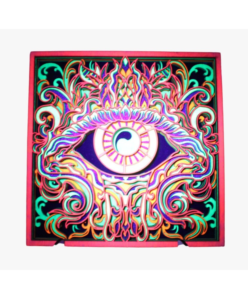 Această piesă artistică este ideală pentru pasionații de artă modernă, decoruri psihedelice sau pentru cei care apreciază simbolismul ochiului atotvăzător.