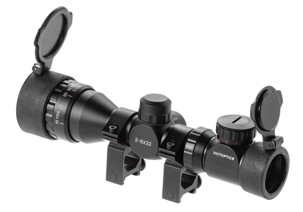 Pachetul include: Luneta Victoptics A3 2-6x32 Vector Optics, montura weaver 25.4 mm (implicit) sau montura dovetail, parasolar, capace flip-up pentru protectie lentile.